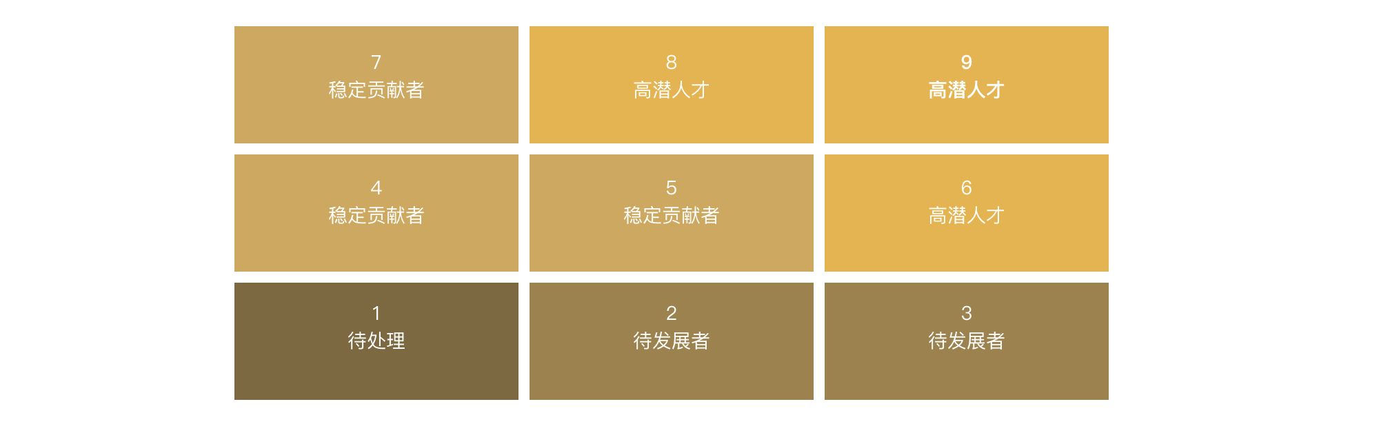 主要以績效和能力兩個(gè)維度判分得出公司對(duì)應(yīng)的九宮格人才地圖,